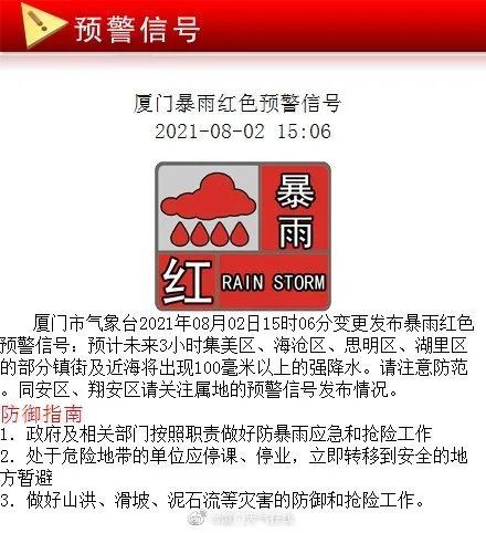 據(jù)@廈門天氣在線:現(xiàn)在暴雨逐漸轉移到了島內(nèi)的南邊,提醒在外面的朋友先就近避雨,不要冒險涉水或走低洼的地方,注意安全。