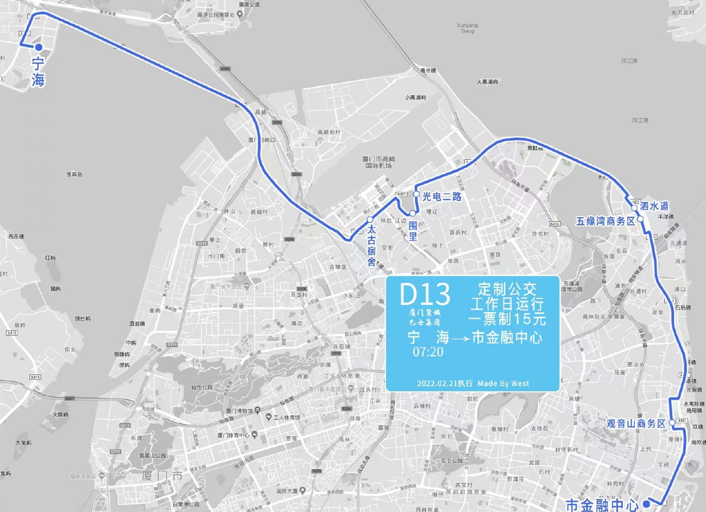 臺(tái)海網(wǎng)2月14日訊 據(jù)廈門日報(bào)報(bào)道 2月21日起,廈門公交集團(tuán)調(diào)整D13路延伸至市金融中心運(yùn)營,同時(shí)取消D17路,具體如下: