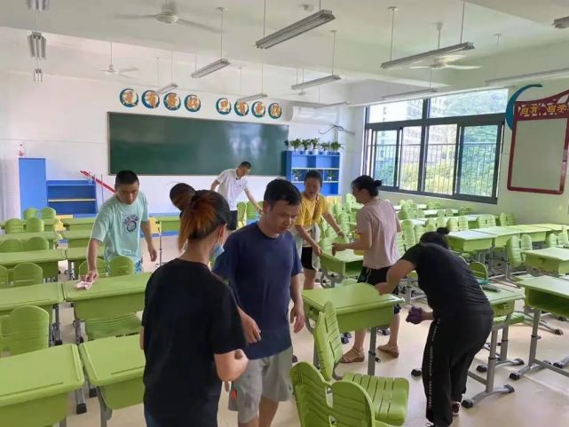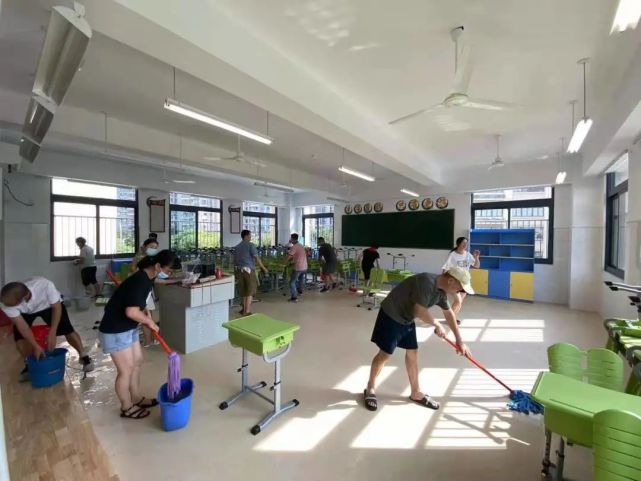 家委會成員 林先生:“學校老師很早前就在準備新學期相關(guān)事宜,作為家長,感恩體諒學校的辛苦,自告奮勇來大掃除。新教學樓很漂亮,相信孩子能在這度過開心的初一時光。”